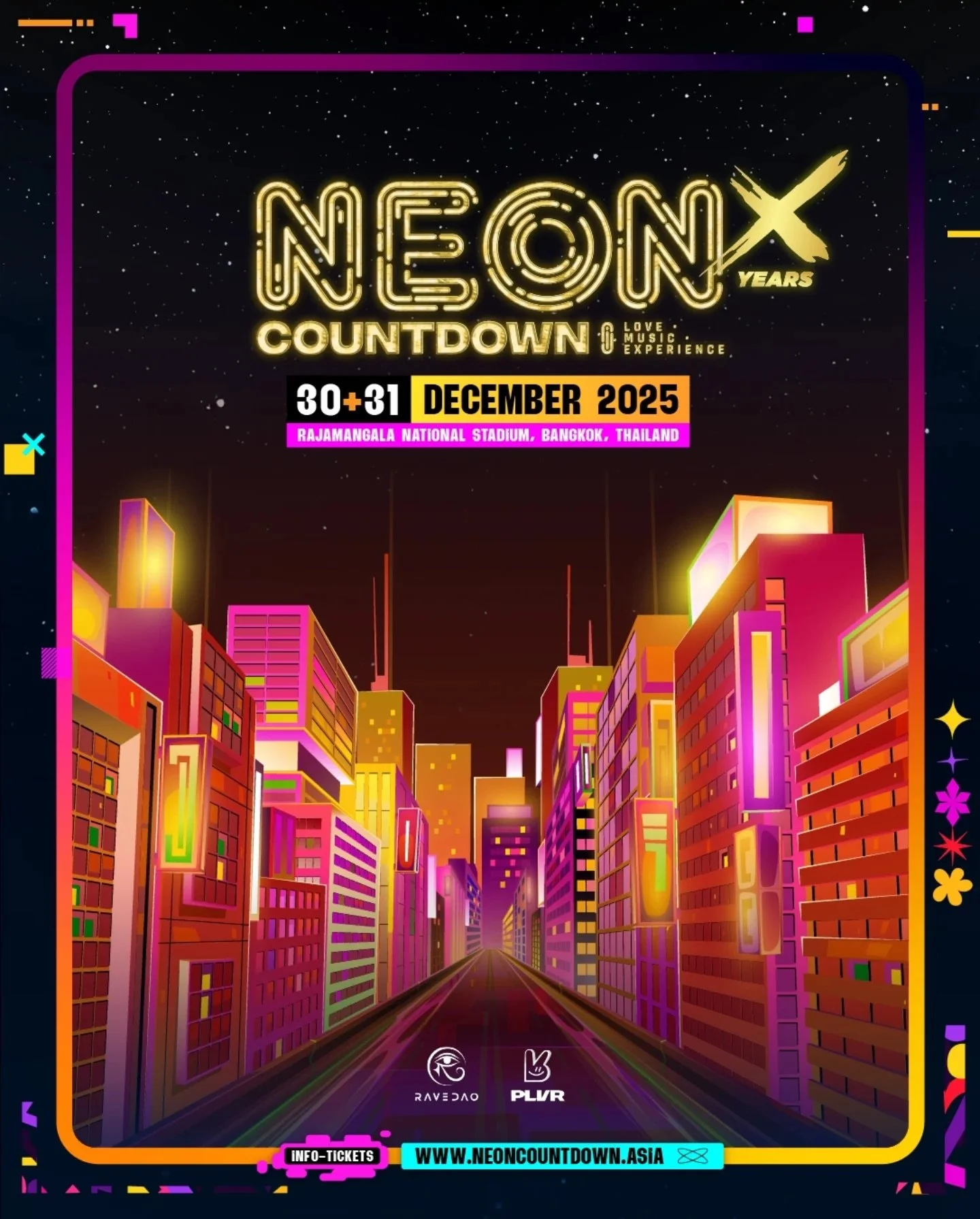 NEON Countdown คืองาน EDM เคาท์ดาวน์ระดับยักษ์ใหญ่ที่ฉลองการเข้าสู่ปีใหม่ 2026 อย่างเป็นทางการ โดยจะจัดในวันที่ 30 - 31 ธันวาคม 2568 ณ ราชมังคลากีฬาสถาน ที่ได้รับการยกระดับให้เป็นบ้านใหม่ของงานนี้ ไลน์อัพที่ประกาศออกมาสมศักดิ์ศรีงานส่งท้ายปี! นำทีมโดย Alesso, Amelie Lens, KSHMR, Nicky Romero, และ Third Party ร่วมด้วยดีเจอีกคับคั่ง NEON เน้น Production แสง สี เสียง อลังการตามธีม Neon และมักมี Hardstyle/Techno มาเสริมทัพความมันส์ในช่วงเคาท์ดาวน์